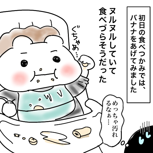 まだつかみ食べ2回しかさせてません…めっちゃ汚れますよね😭
