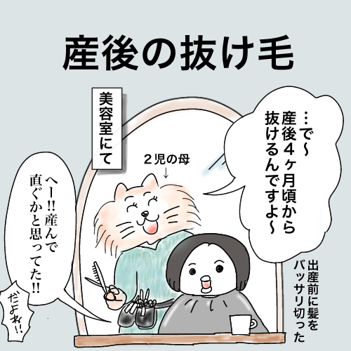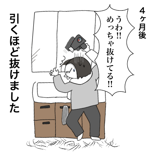 産後の抜け毛日常TwitterFacebookはてブPocketLINEコピー2022.02.07こんばんは☃️ 週末買い物に行ったはずなのに、月曜にはほぼ無い我家です。まじで何も無い😂 今回は、産後の抜け毛についての3コマ漫画&落書きです。 ウニかな?ってくらいツンツンでしたwwwこれを期に前髪作りました😂 前髪ロングでもこのウニを隠せる方法があれば知りたいです。8ヶ月頃には、抜け毛は落ち着いてきた気がします!初めはびっくりするくらい抜け落ちて、1日中掃除機かけまくってました。