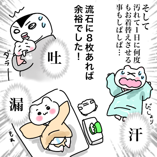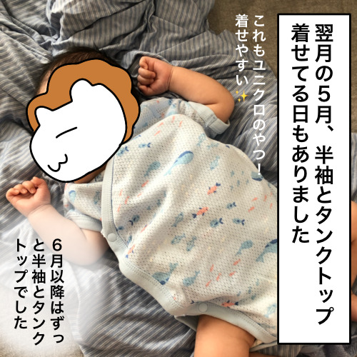 今回は、4月の新生児期〜10月の生後半年頃まで着せていた服についての漫画です。