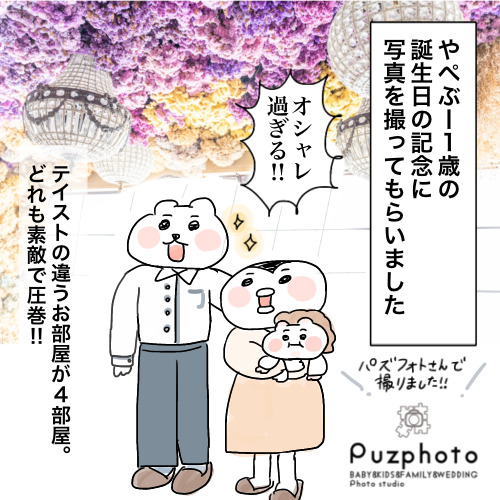 今回は🦁やぺぶーの1歳記念にバースデーフォトを撮りに行った漫画です📸