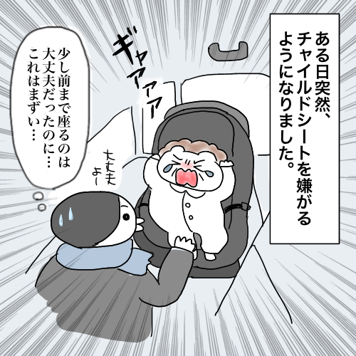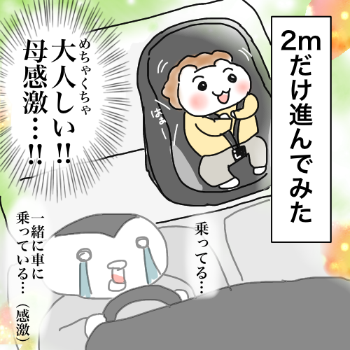 初日は怖がってたので車内で抱っこしてました。お菓子を食べさせたり、シナぷしゅの動画を見せたりしてるうちに車に慣れてきて、2回目でチャイルドシートに乗せても嫌がらなくなった😭👏✨