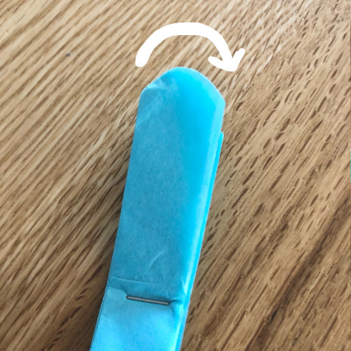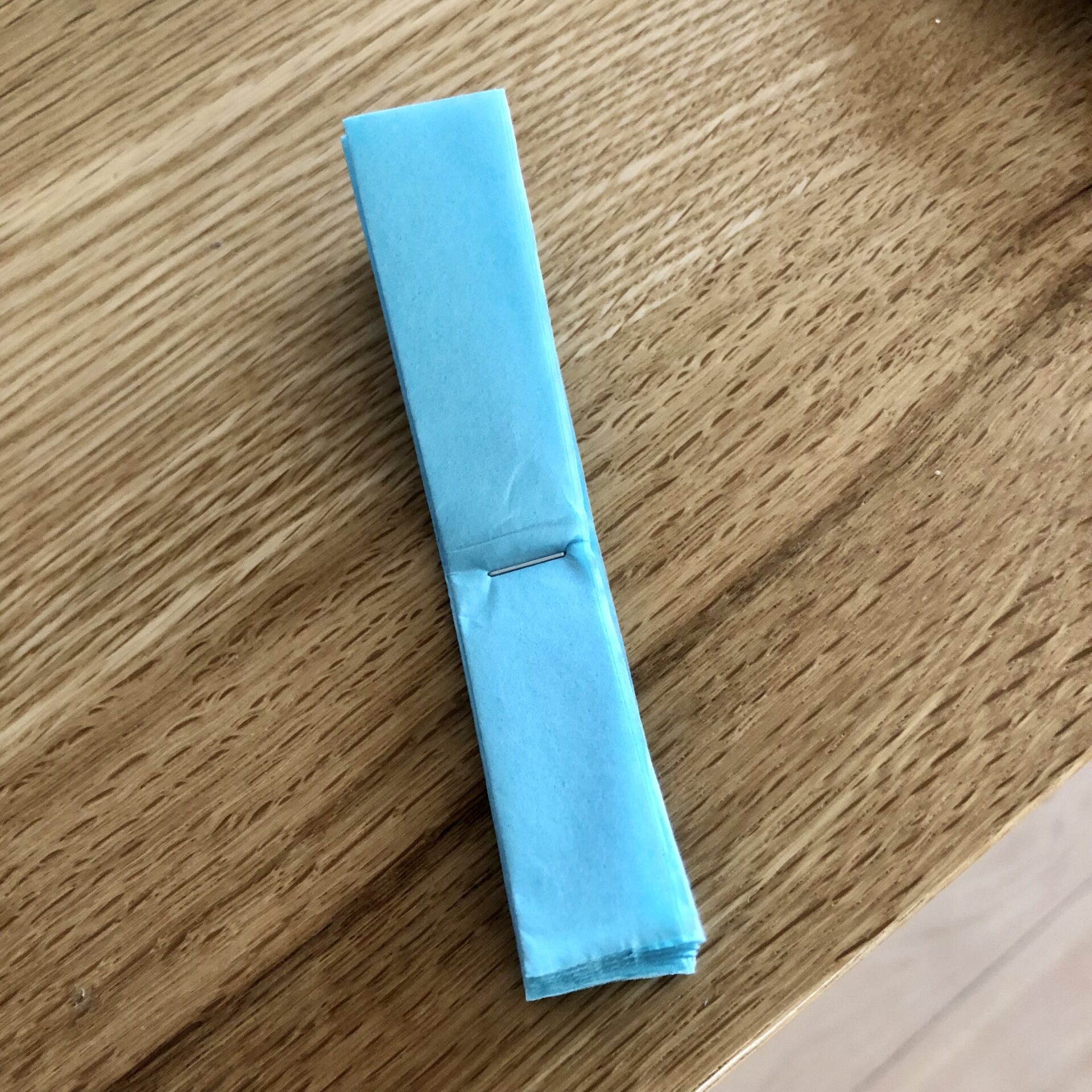 ③カットしたら、真ん中をホッチキスでとめます。
