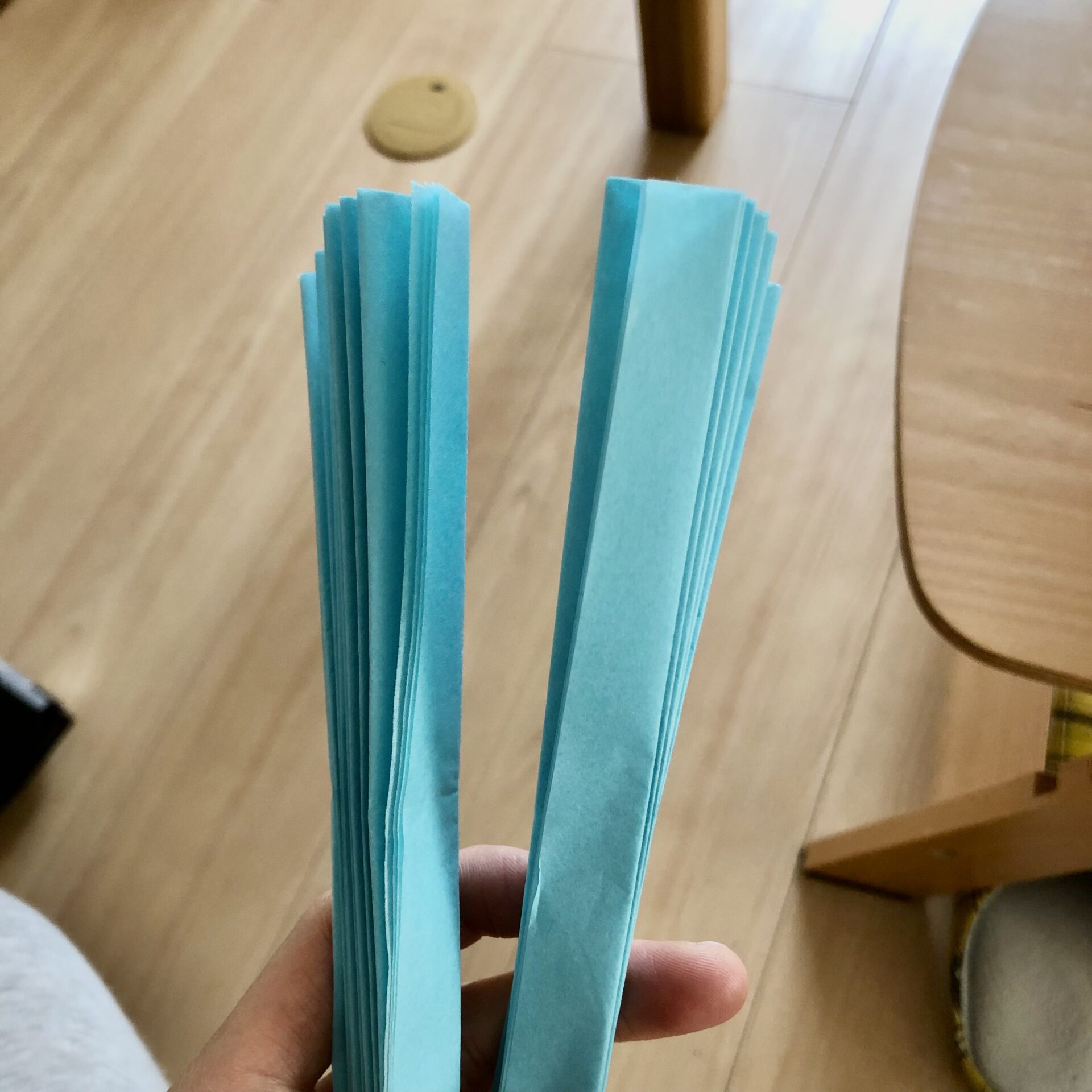 ①フラワーペーパーを3枚〜4枚重ねに分ける。(元々は7枚重ねでした)