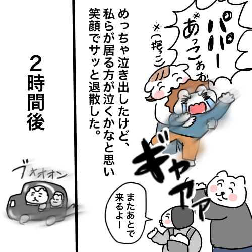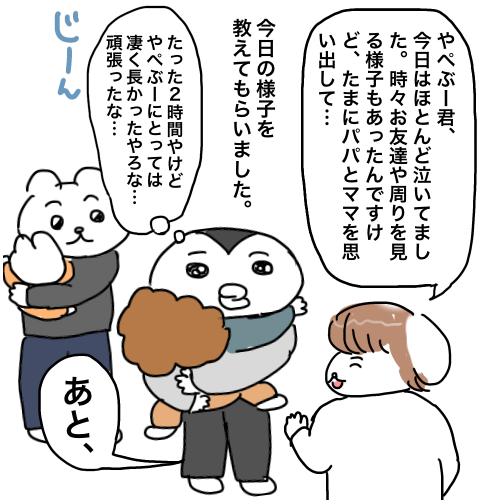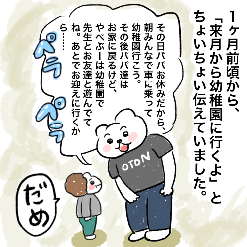 こんにちは🐧先月やぺぶーが3歳になり、幼稚園に通い始めました🌷️🦁今日の漫画は慣らし保育編です(1ヶ月以上経っているので、かなり時差投稿)