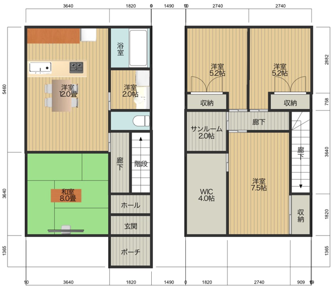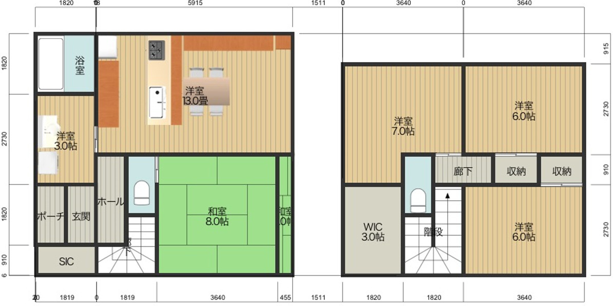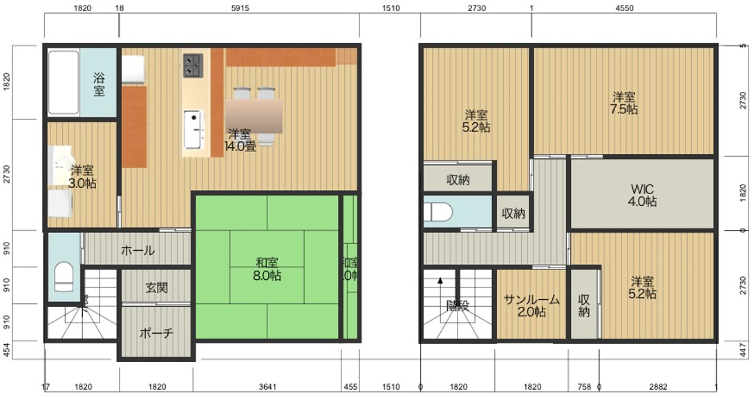 この「910×910」を「910×1820」、「1820×1820」と増やしていけば基本OK。