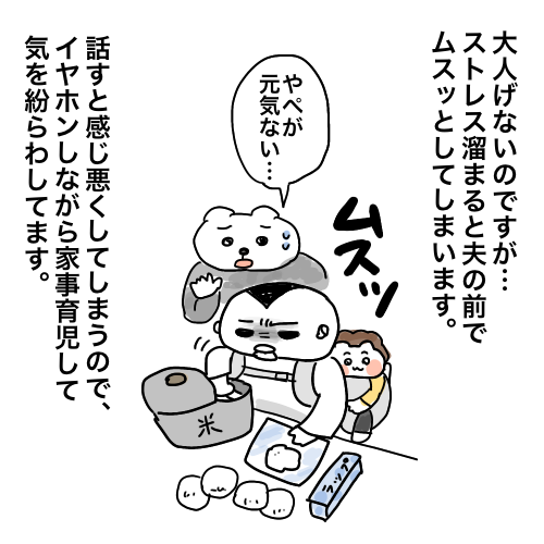 良くないけど、一人でもうムリって時はイヤホンしながらやぺぶーにご飯あげたりしてます。それでなんとか保ててる🙃